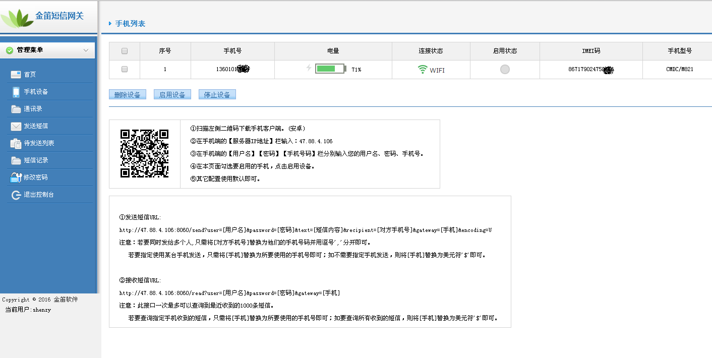 这个相当于web版中间件的运营版, 发送量小完全免费,发送量大适当收费,试运行期间无论发送量大量小一律免费。 只要有一部安卓手机,就可以通过这个软件平台或者使用平台提供的接口控制手机收发短信。 欢迎使用。