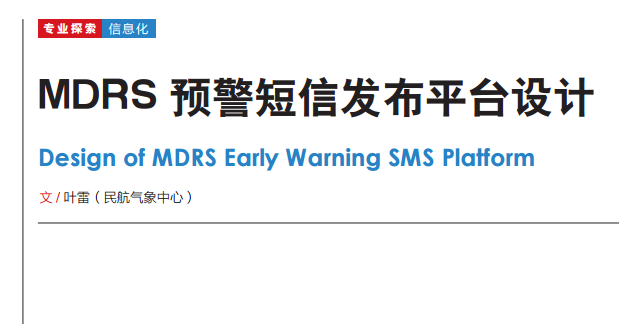 引言 MDRS(Massive Delay Response System),即大面积航班延 误响应机制,是民航部门为了应对机场、航路、空域等出现大 面积航班延误时,所采取的应急响应机制。在启动 MDRS 前, 民航管理部门一般会发布预警短信,组织各成员单位应对即将 到来或已经开始的大面积航班延误。根据工作流程规定,民航 气象中心在收到民航上级管理部门发布的 MDRS 预警短信后, 需要 [...]