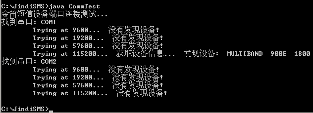CommTest.java:GSM设备串口连接测试。主要看连接到哪个串口,连接速率检测。