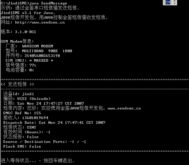 jdsmsserver-3.4.6jar:金笛短信开发调用API