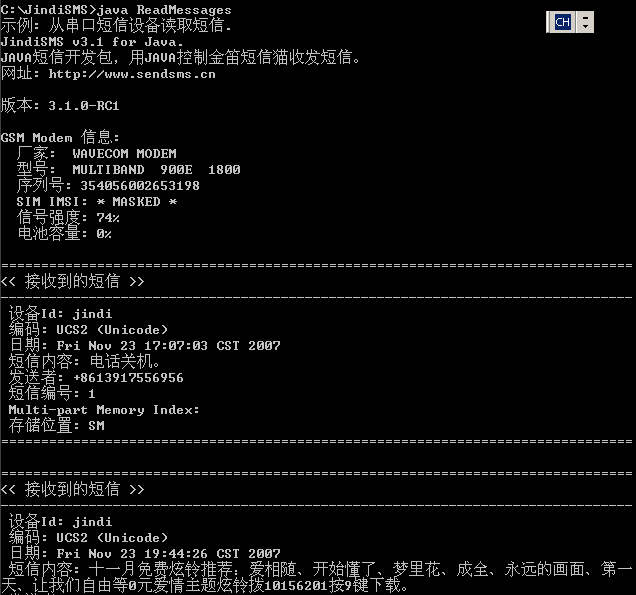 java-V3.4.8-trial 是用JAVA控制GSM Modem实现短信收发功能的开发包。利用java-V3.4.6-trial可以实现跨平台的短信发送,目前支持windowsXP、2000、2003、Linux等操作系统。是实现业务系统和短信系统嫁接的理想工具。